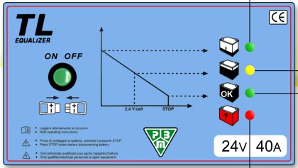 - 以初始充电阶段的电流来确定合适的充电器:每100安时的蓄电池容量为16安培(例如:一个240安时的蓄电池的充电机应是16安培 X 2.4约40安培。)