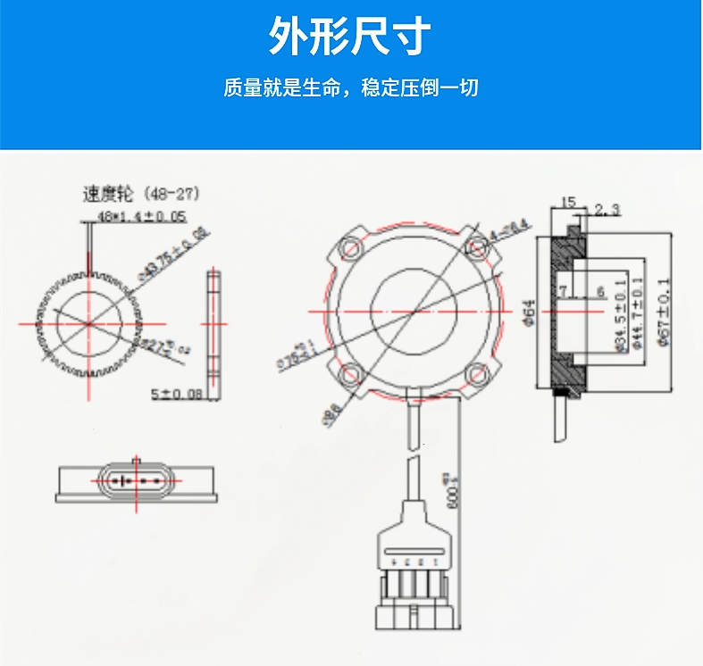 φ67mm全塑料壳叉车电机编码器48脉冲、64脉冲