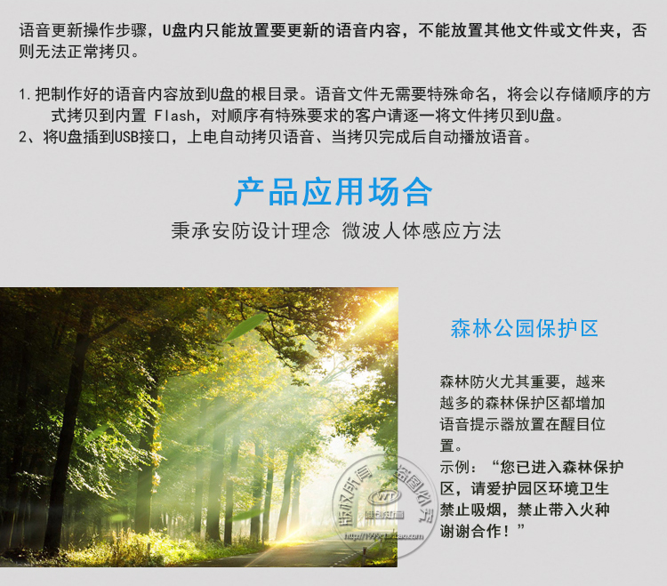 唯创 森林防火宣传系统警示工具户外微波感应语音提示器自定义声音遥控