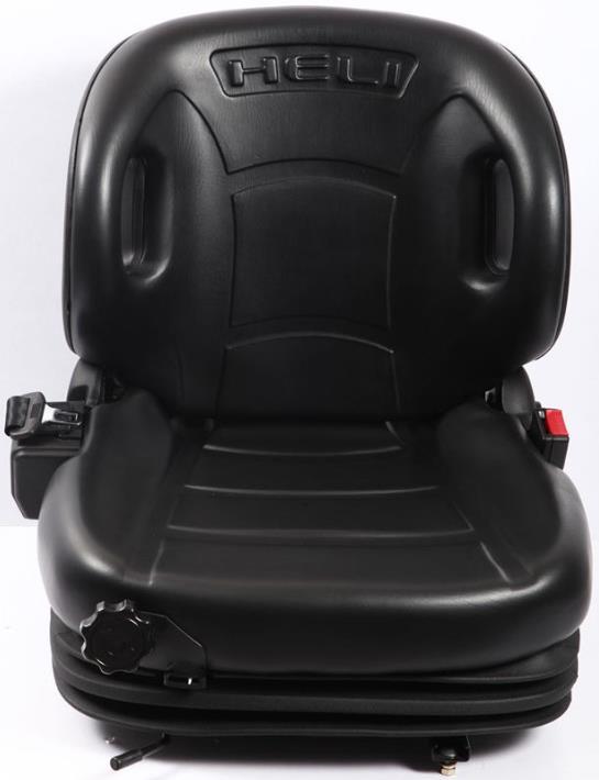 新H座椅主要有减震全悬浮座椅与非减震座椅,减震座椅标配有安全带、接触开关、体重调节装置。另外座椅靠背可根据客户要求印入客户商标。