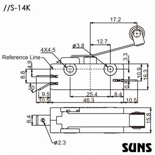 SUNS美国三实S-14K通用型微动开关产品图片/图纸
