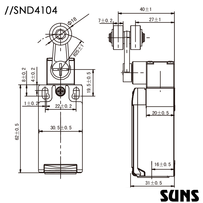 SUNS美国三实塑料壳体行程开关SND4104-SP-C安全限位开关产品图片/图纸