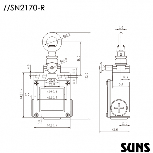 SUNS美国三实单向动作式拉绳开关SN2170-R手动复位安全拉绳开关 技术参数