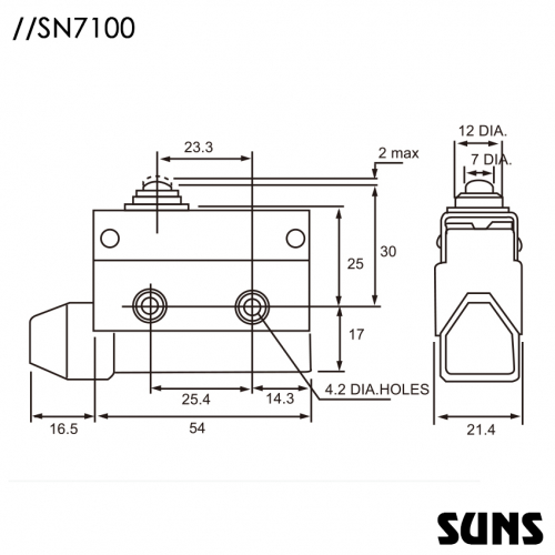 SUNS美国三实SN7100小型封闭式限位开关产品图片/图纸