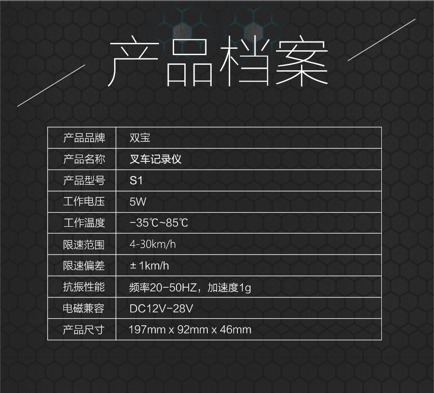 广州市双宝叉车记录仪采用微电脑程序控制,借助平台强大的数据分析功能,实现了对车辆和驾驶人员的数据整合。围绕叉车安全、叉车效率两大主题,该产品让管理者既高效地管理叉车车队,又轻松地保障厂区安全。 产品的优势体现在提高管理者叉车车队管理效率上,可用U盘对每台叉车进行数据导出分析,方便管理。而限速和报警功能则保障了厂区行车安全。