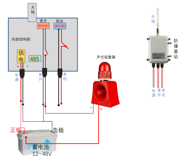 | 接口 | DC 供电口、RS485数据输出口、常开继电器、常闭继电器 |