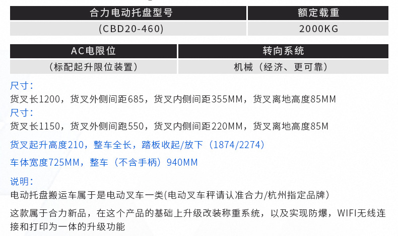 迅晖:2吨CBD-460电动托盘叉车 电动搬运称重系统