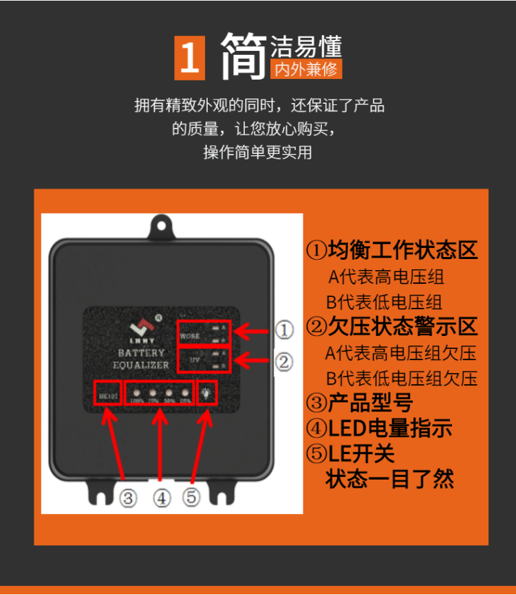 蓄电池均衡器 24v太阳能系统专用衡器配件铅酸蓄电池平衡器48V