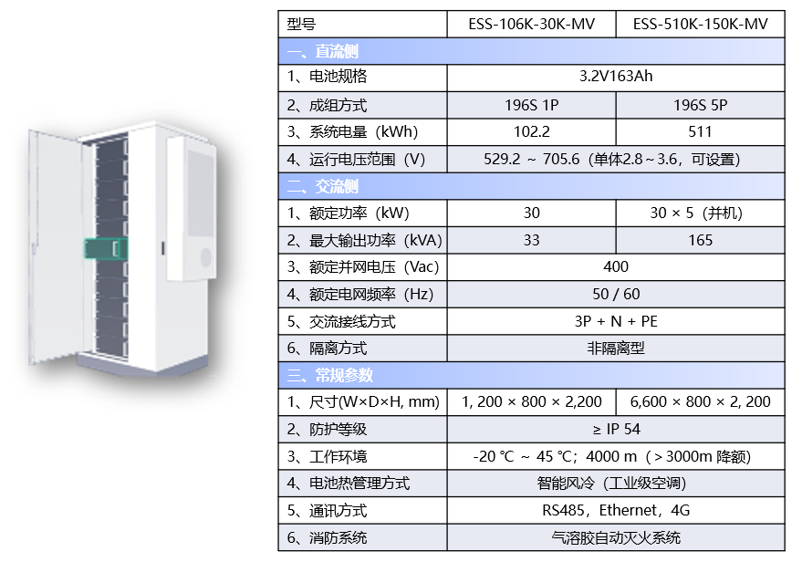 产品简介:ESS系列分布式储能柜,是专注于储能应用领域开发的系统级产品,采用ESB系列储能标准电池箱,并配置储能双向变流器、EMS、BMS、TMS、消防等集成于标准电气柜内满足特殊应用场地的储能装置。