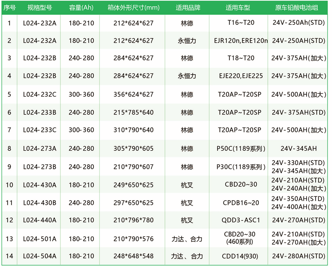 24V平台可选容量有(8串电芯):180Ah、202Ah、210Ah、228Ah、240Ah、280Ah、302Ah、360A