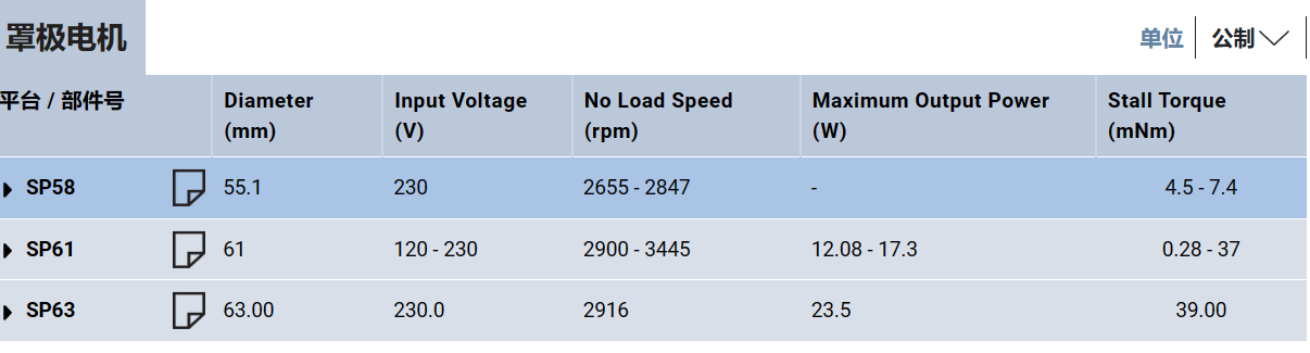 德昌电机提供了直径从48mm到63mm的罩极电机范围。罩极电机适用于低负荷、寿命超过1000小时、1.5W至25W功率范围的应用。低噪声性能使其适合家庭技术和个人护理等应用场合。这种罩极电机可根据客户应用的功率和集成需求而定制设计。下面列举的平台电机是一些应用的例子。PDF产品数据表提供了电机的性能细节。您可联系我们获取样品并提出您的工程定制要求。