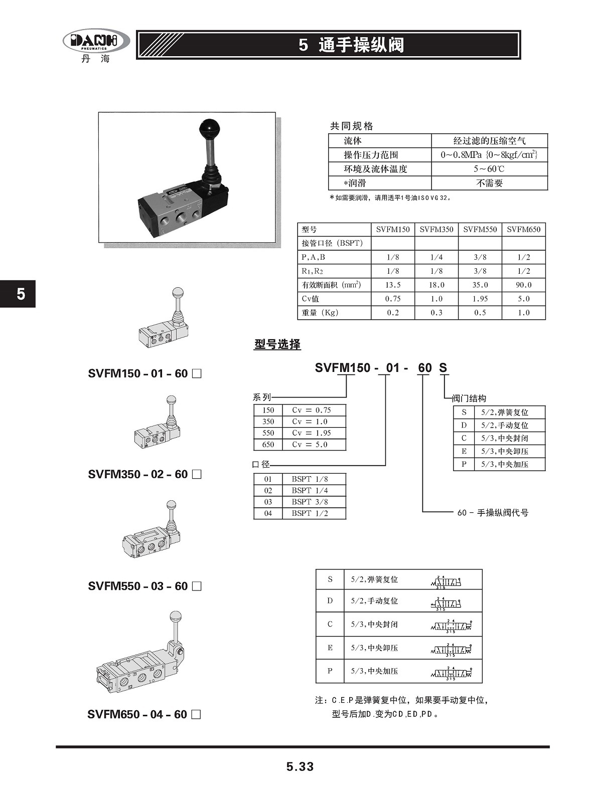 韩国DANHI丹海2位5通手操纵阀,2位5通手动换向阀,3位5通手动换向阀,换向阀,切换阀,3位5通手操纵阀,5通手动阀,手动换向阀,手动切换阀,5通手扳阀,5通手转阀,5通手动换向阀:SVFM150-01-60S,SVFM150-01-60D,SVFM150-01-60C,SVFM150-01-60E,SVFM150-01-60P,SVFM350-02-60S,SVFM350-02-60D,SVFM350-02-60C,SVFM350-02-60E,SVFM350-02-60P,SVFM550-03-60S,SVFM550-03-60D,SVFM550-03-60C,SVFM550-03-60E,SVFM550-03-60P,SVFM650-04-60S,SVFM650-04-60D,SVFM650-04-60C,SVFM650-04-60E,SVFM650-04-60P。